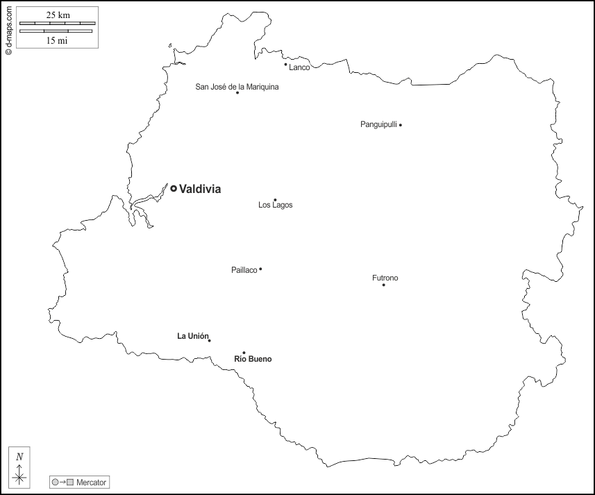 d-maps > महाअमेरिका > चिली > लॉस रिओस > बाह्यरेखा, मुख्य शहरों, नाम, सफेद
