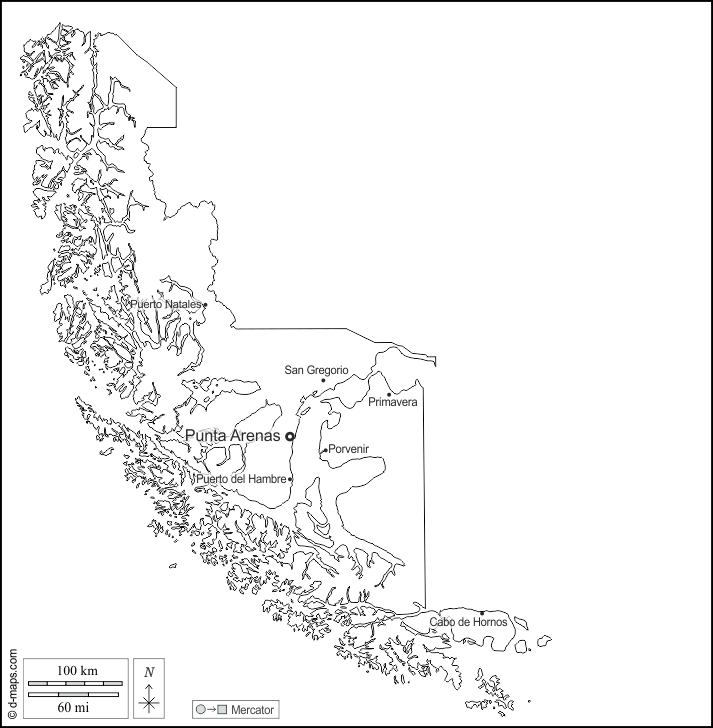 d-maps > महाअमेरिका > चिली > मैगालान्स > बाह्यरेखा, मुख्य शहरों, नाम, सफेद
