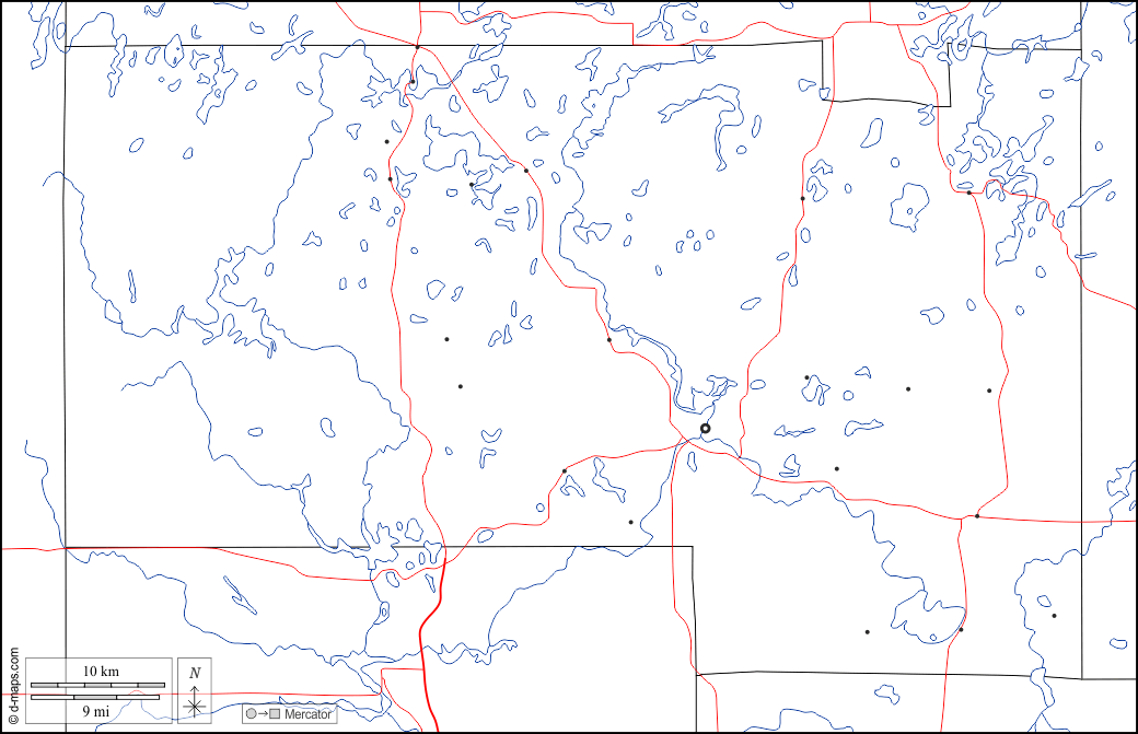 d-maps > संयुक्त राज्य > विस्कॉंसिन > वनडा काउंटी > सीमाओं, जल-सर्वेक्षण, मुख्य शहरों, सड़कों, सफेद