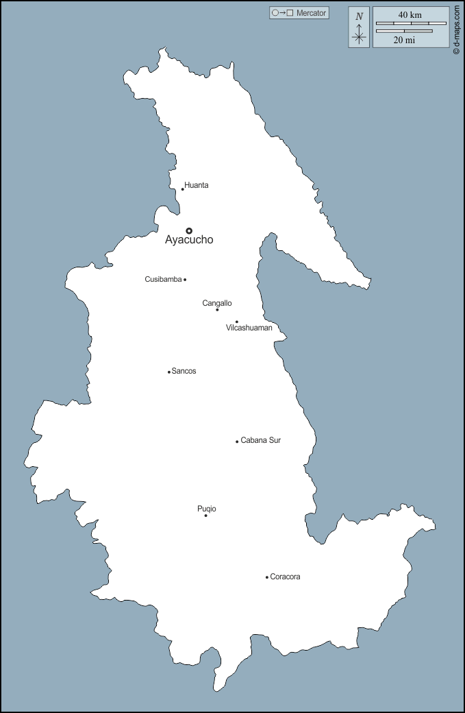d-maps > महाअमेरिका > पेरू > आयकाचो > बाह्यरेखा, मुख्य शहरों, नाम