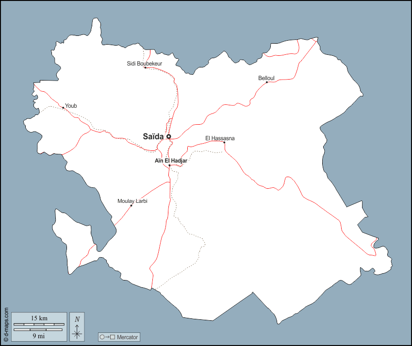 d-maps > अफ्रीका > अल्जीरिया > सदा > बाह्यरेखा, मुख्य शहरों, सड़कों, नाम