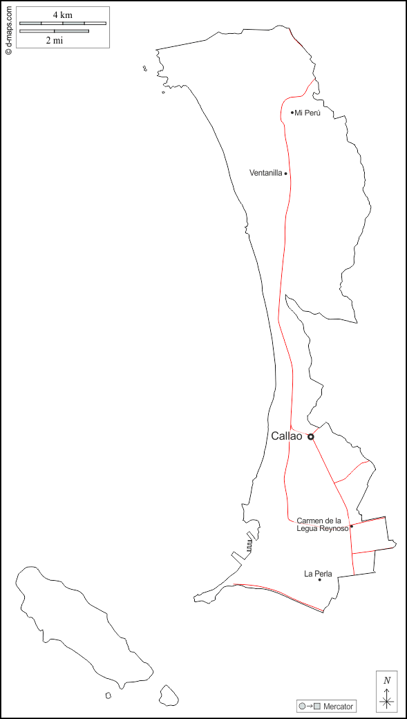 d-maps > महाअमेरिका > पेरू > कैलाओ > बाह्यरेखा, मुख्य शहरों, सड़कों, नाम, सफेद