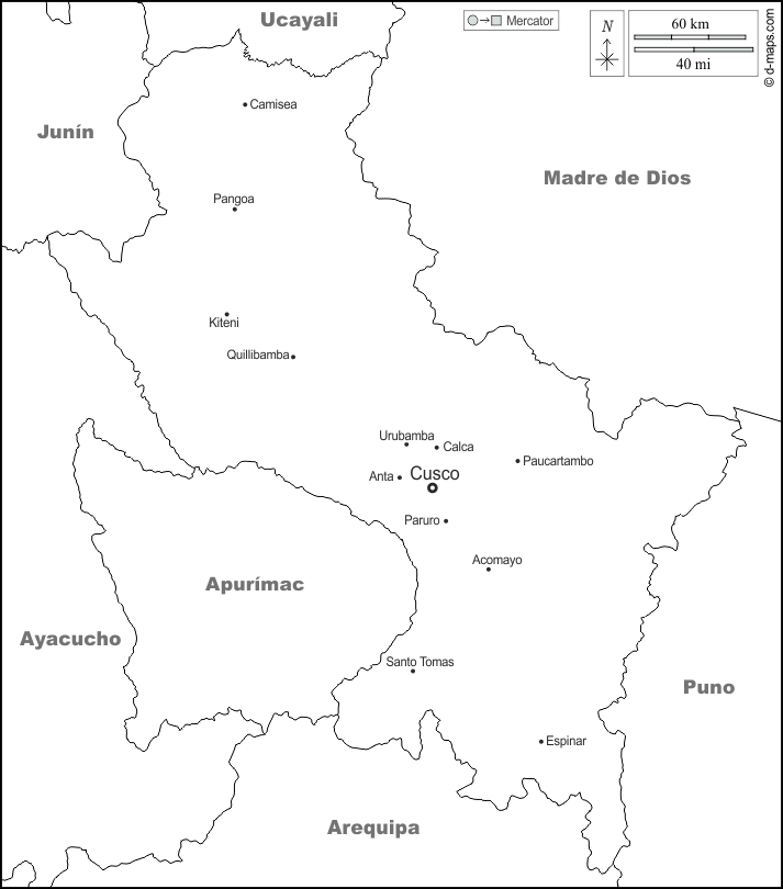 d-maps > महाअमेरिका > पेरू > कस्को > सीमाओं, मुख्य शहरों, नाम, सफेद