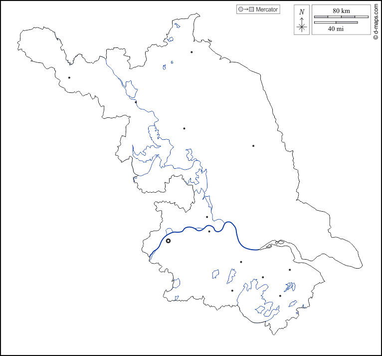 d-maps > एशिया > चीनी जनवादी गणराज्य > जिआंगसू > बाह्यरेखा, जल-सर्वेक्षण, मुख्य शहरों, सफेद