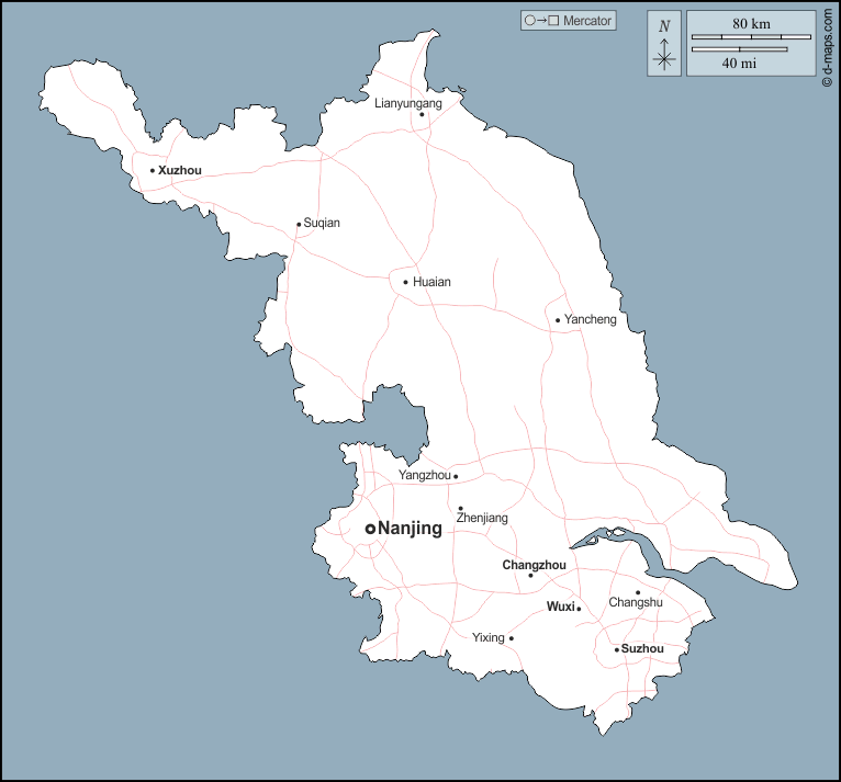 d-maps > एशिया > चीनी जनवादी गणराज्य > जिआंगसू > बाह्यरेखा, मुख्य शहरों, सड़कों, नाम