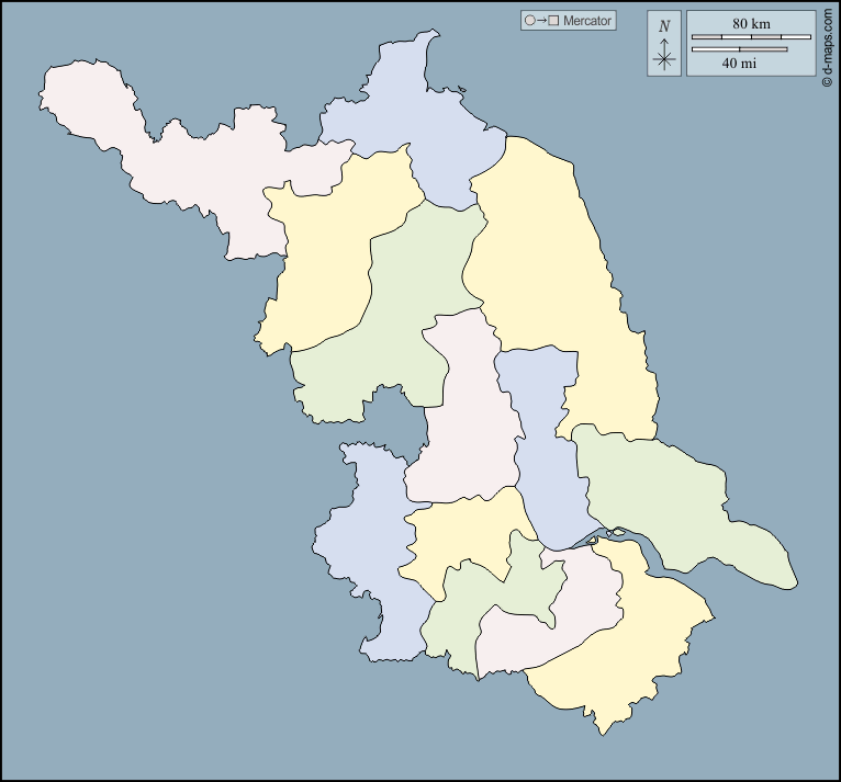 d-maps > एशिया > चीनी जनवादी गणराज्य > जिआंगसू > बाह्यरेखा, जनपदों, रंग