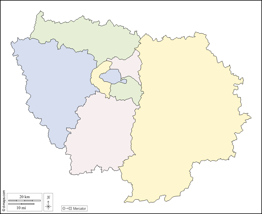 d-maps > यूरोप > फ़्रान्स > इल-दा-फ़्रान्स > बाह्यरेखा, विभागों, रंग, सफेद