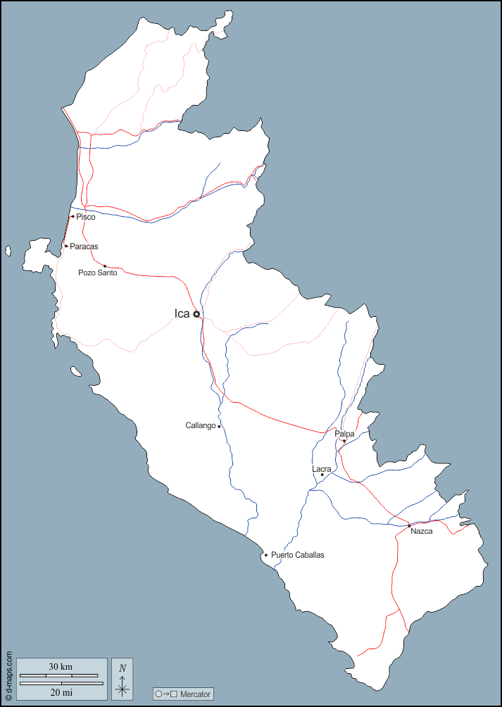 d-maps > महाअमेरिका > पेरू > आइका > बाह्यरेखा, जल-सर्वेक्षण, मुख्य शहरों, सड़कों, नाम