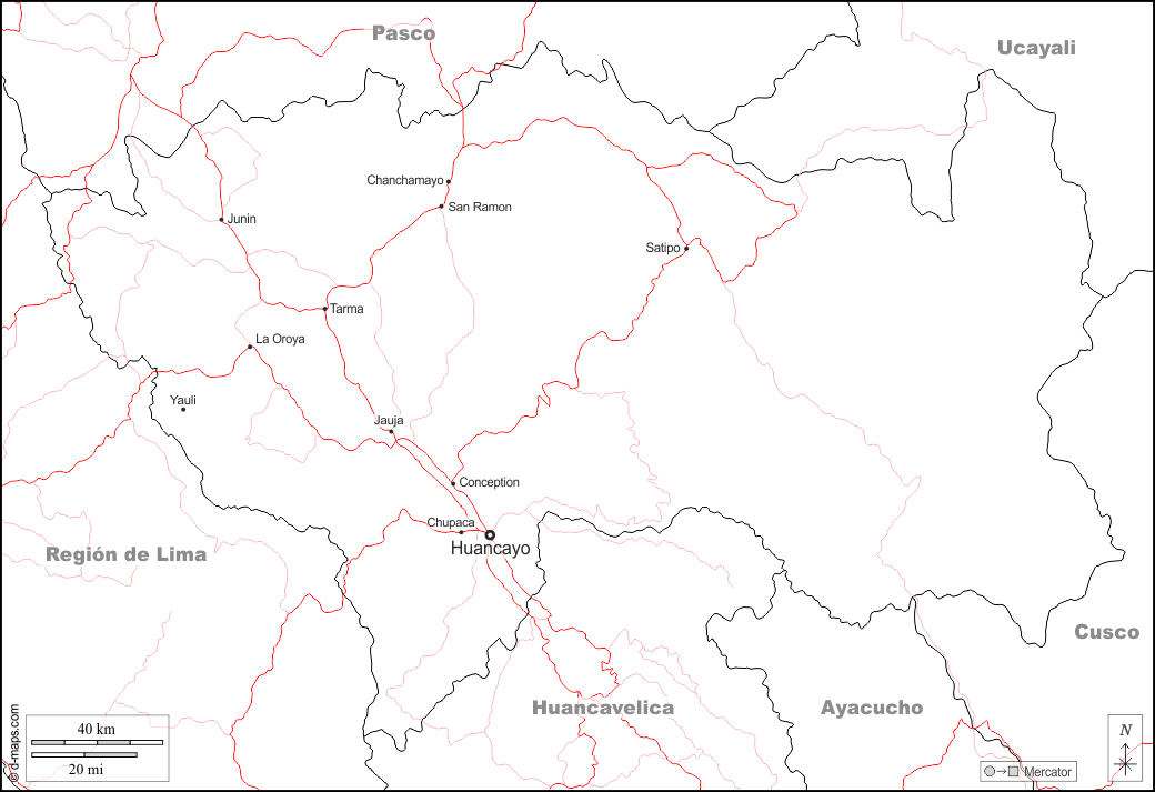 d-maps > महाअमेरिका > पेरू > जूनिन > सीमाओं, मुख्य शहरों, सड़कों, नाम, सफेद