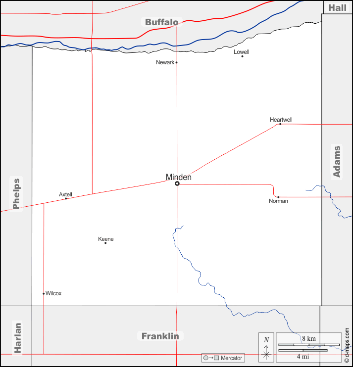 d-maps > संयुक्त राज्य > नेब्रास्का > केर्नी काउंटी > सीमाओं, जल-सर्वेक्षण, मुख्य शहरों, सड़कों, नाम