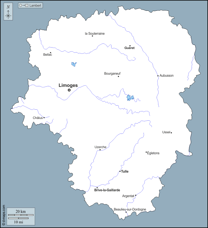d-maps > यूरोप > फ़्रान्स > लिमोसिन > बाह्यरेखा, जल-सर्वेक्षण, मुख्य शहरों, नाम