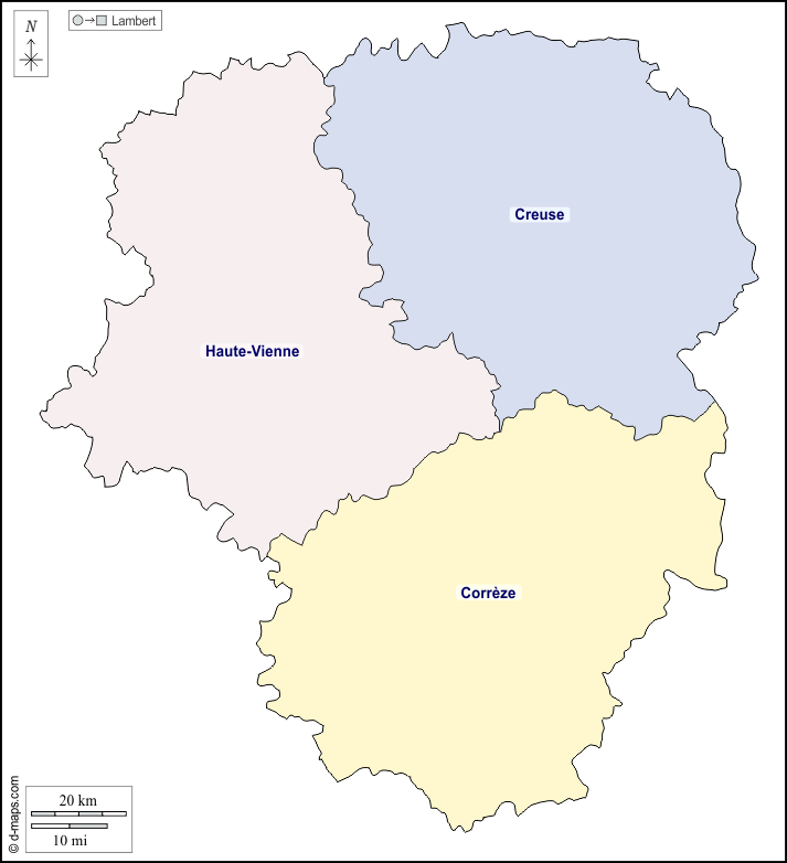 d-maps > यूरोप > फ़्रान्स > लिमोसिन > बाह्यरेखा, विभागों, नाम, रंग, सफेद