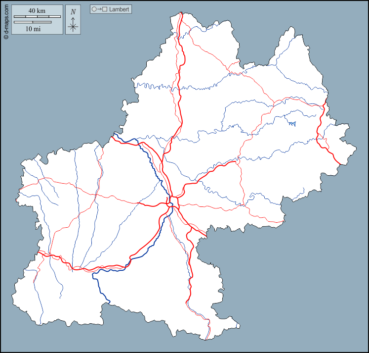 d-maps > यूरोप > फ़्रान्स > मिडी-पिरेनीज़ > बाह्यरेखा, जल-सर्वेक्षण, सड़कों