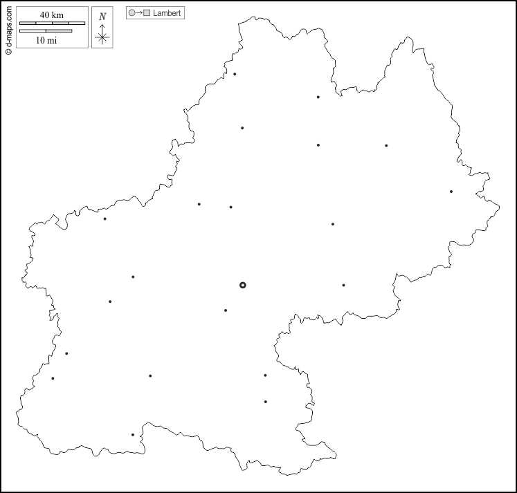 d-maps > यूरोप > फ़्रान्स > मिडी-पिरेनीज़ > बाह्यरेखा, मुख्य शहरों, सफेद