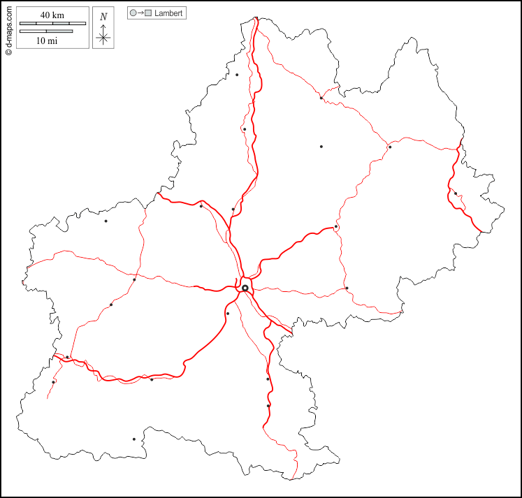 d-maps > यूरोप > फ़्रान्स > मिडी-पिरेनीज़ > बाह्यरेखा, मुख्य शहरों, सड़कों, सफेद