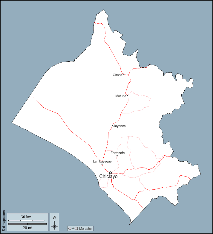 d-maps > महाअमेरिका > पेरू > लंबायेक > बाह्यरेखा, मुख्य शहरों, सड़कों, नाम