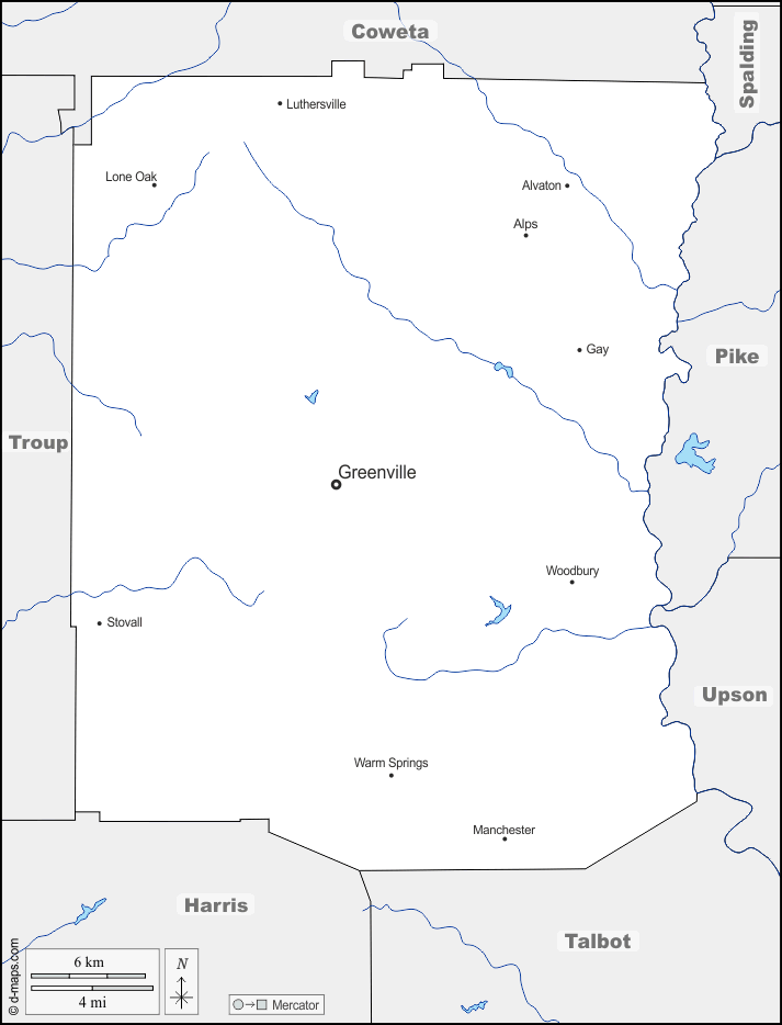 d-maps > संयुक्त राज्य > जॉर्जिया > मेरिइवेर काउंटी > सीमाओं, जल-सर्वेक्षण, मुख्य शहरों, नाम
