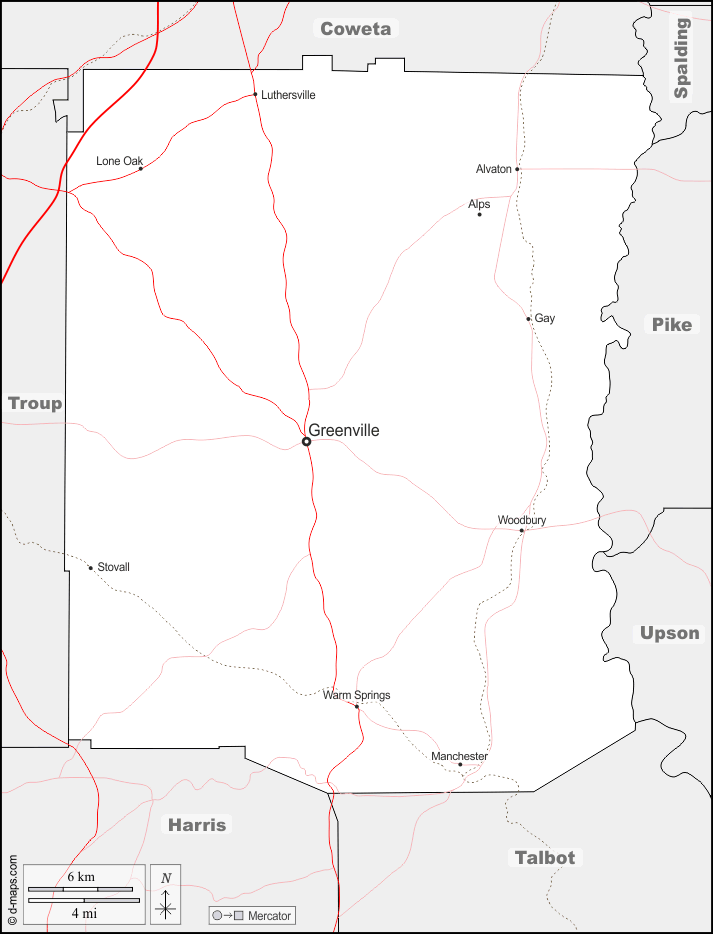 d-maps > संयुक्त राज्य > जॉर्जिया > मेरिइवेर काउंटी > सीमाओं, मुख्य शहरों, सड़कों, नाम