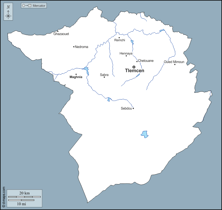 d-maps > अफ्रीका > अल्जीरिया > टेंमेलन > बाह्यरेखा, जल-सर्वेक्षण, मुख्य शहरों, नाम