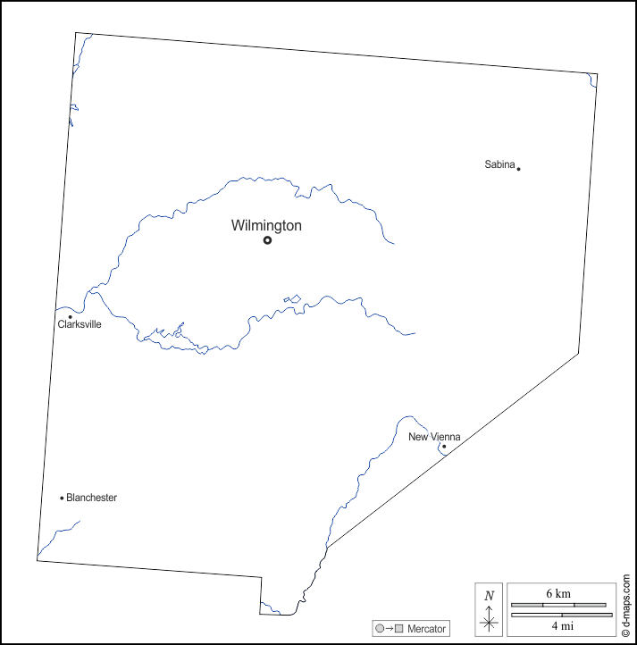 d-maps > संयुक्त राज्य > ओहायो > क्लिंटन काउंटी > बाह्यरेखा, जल-सर्वेक्षण, मुख्य शहरों, नाम, सफेद
