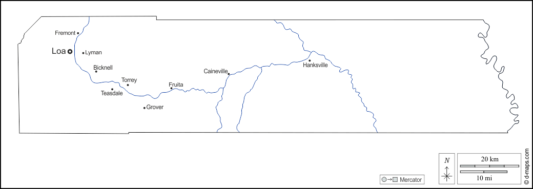 d-maps > संयुक्त राज्य > यूटा > वेन काउंटी > बाह्यरेखा, जल-सर्वेक्षण, मुख्य शहरों, नाम, सफेद