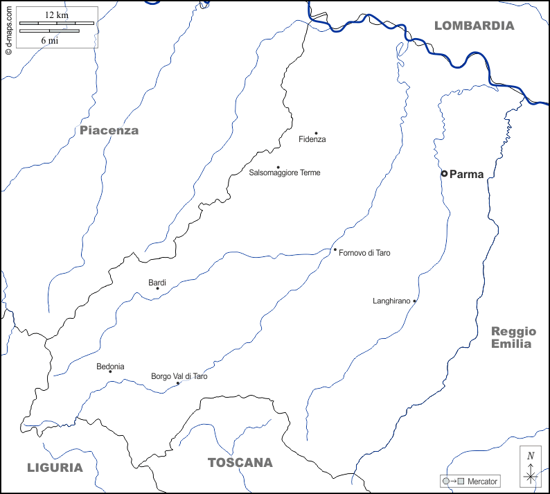 d-maps > यूरोप > इटली > पर्मा > सीमाओं, जल-सर्वेक्षण, मुख्य शहरों, नाम, सफेद