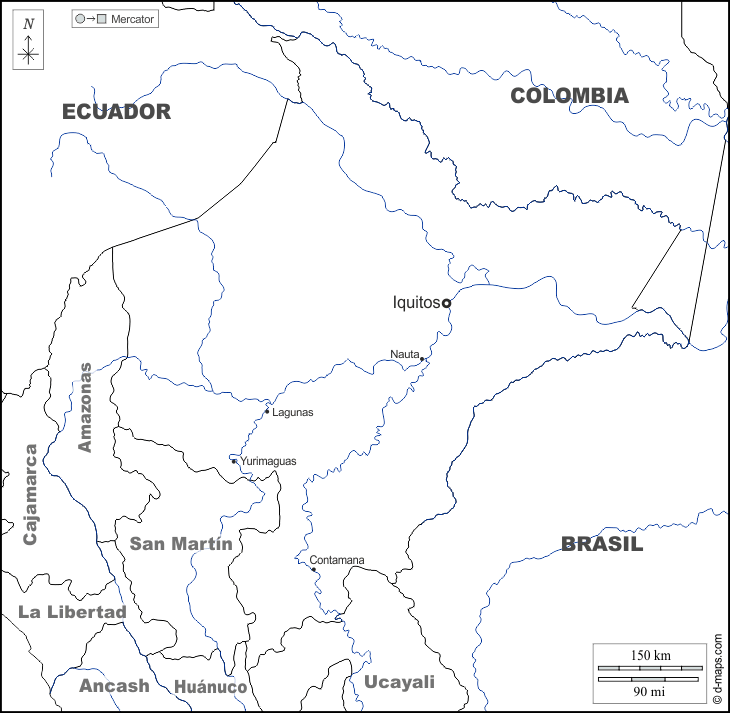 d-maps > महाअमेरिका > पेरू > लोरेटो > सीमाओं, जल-सर्वेक्षण, मुख्य शहरों, नाम, सफेद