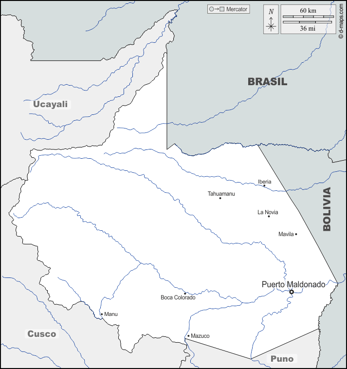 d-maps > महाअमेरिका > पेरू > माद्रे डे डीओस > सीमाओं, जल-सर्वेक्षण, मुख्य शहरों, नाम