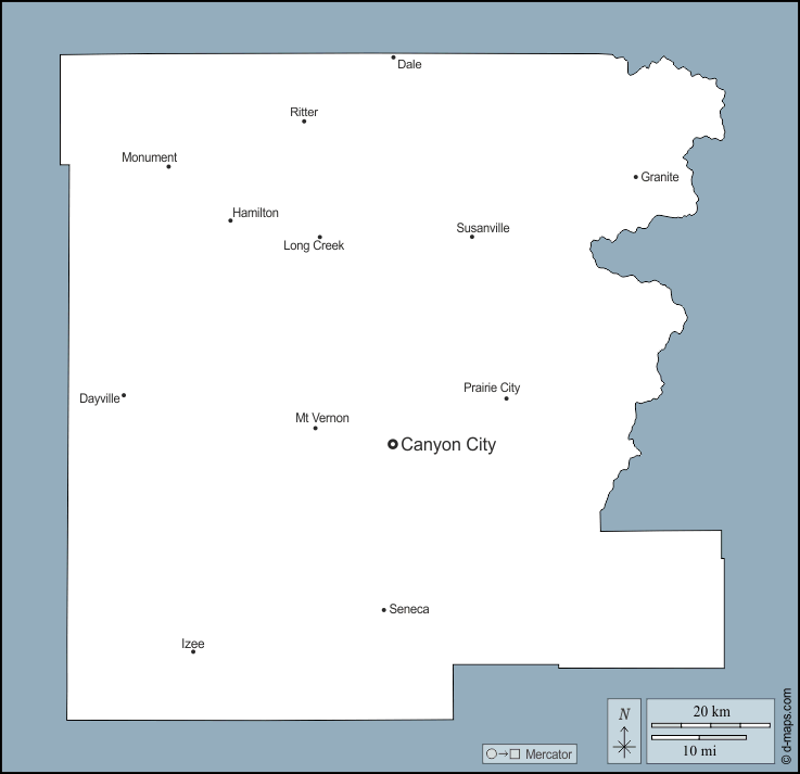 d-maps > संयुक्त राज्य > औरिगन > ग्रांट काउंटी > बाह्यरेखा, मुख्य शहरों, नाम