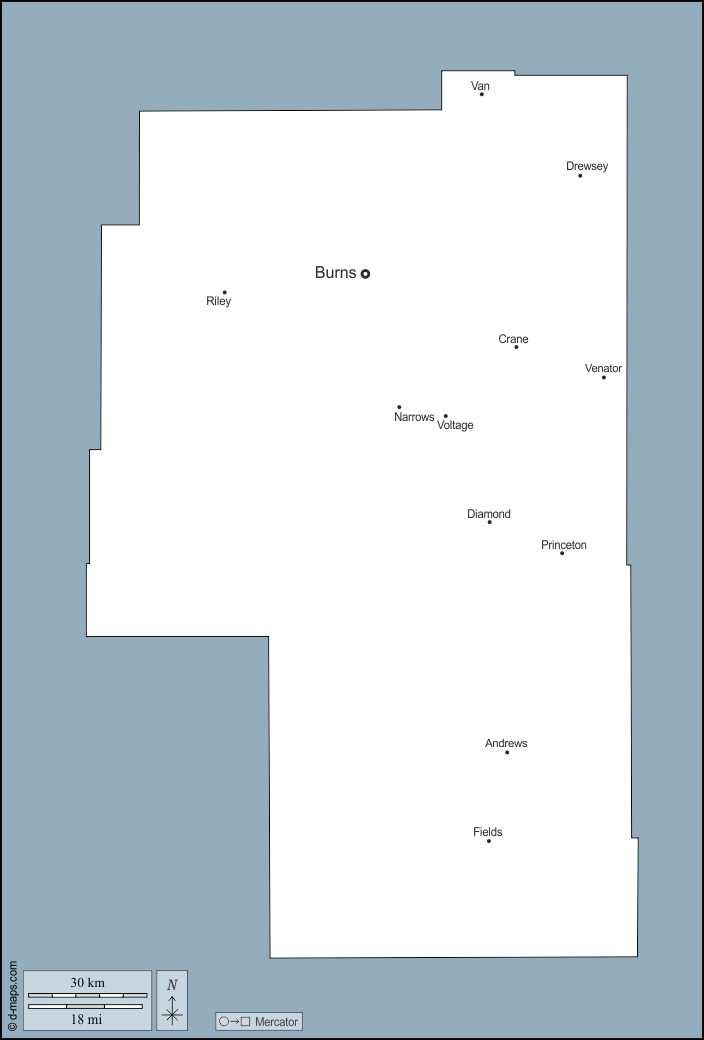 d-maps > संयुक्त राज्य > औरिगन > हर्नी काउंटी > बाह्यरेखा, मुख्य शहरों, नाम
