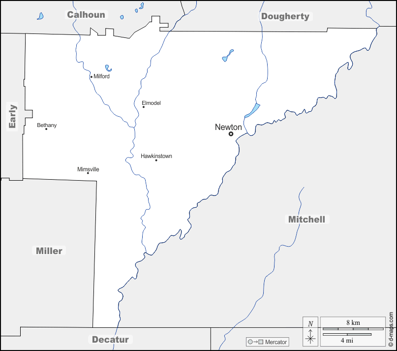 d-maps > संयुक्त राज्य > जॉर्जिया > बेकर काउंटी > सीमाओं, जल-सर्वेक्षण, मुख्य शहरों, नाम