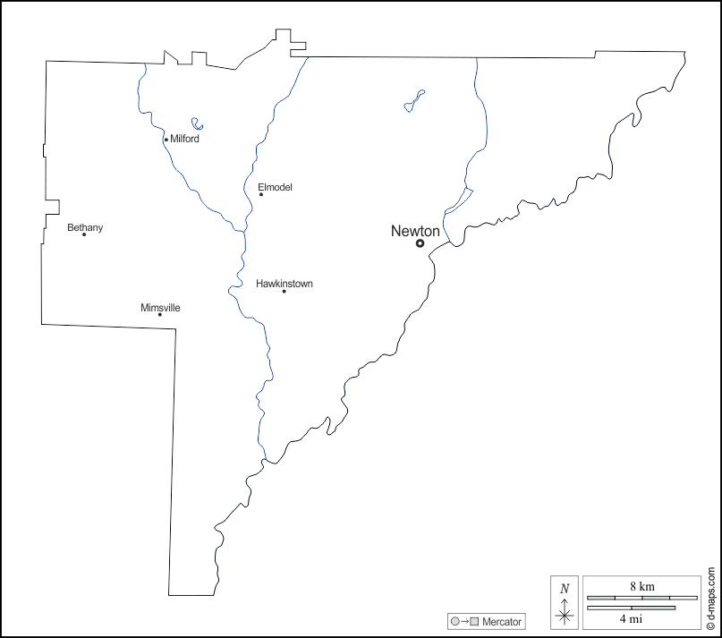 d-maps > संयुक्त राज्य > जॉर्जिया > बेकर काउंटी > बाह्यरेखा, जल-सर्वेक्षण, मुख्य शहरों, नाम, सफेद
