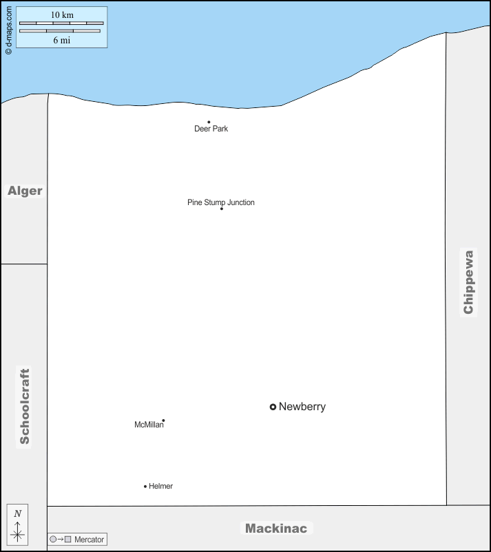 d-maps > संयुक्त राज्य > मिशिगन > लुसे काउंटी > सीमाओं, मुख्य शहरों, नाम