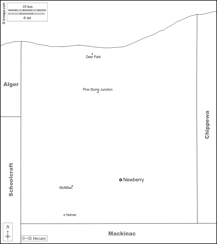 d-maps > संयुक्त राज्य > मिशिगन > लुसे काउंटी > सीमाओं, मुख्य शहरों, नाम, सफेद