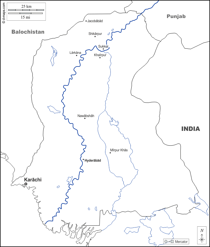 d-maps > एशिया > पाकिस्तान > सिंध > सीमाओं, जल-सर्वेक्षण, मुख्य शहरों, नाम, सफेद