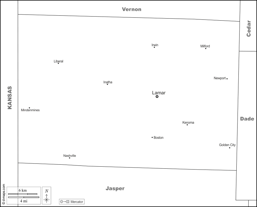 d-maps > संयुक्त राज्य > मिज़ूरी > बार्टन काउंटी > सीमाओं, मुख्य शहरों, नाम, सफेद