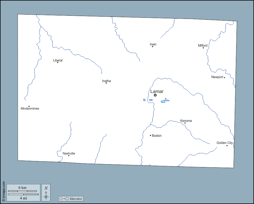d-maps > संयुक्त राज्य > मिज़ूरी > बार्टन काउंटी > बाह्यरेखा, जल-सर्वेक्षण, मुख्य शहरों, नाम