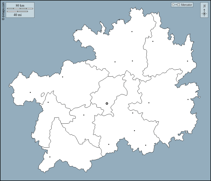 d-maps > एशिया > चीनी जनवादी गणराज्य > गुइझोऊ > बाह्यरेखा, जनपदों, मुख्य शहरों