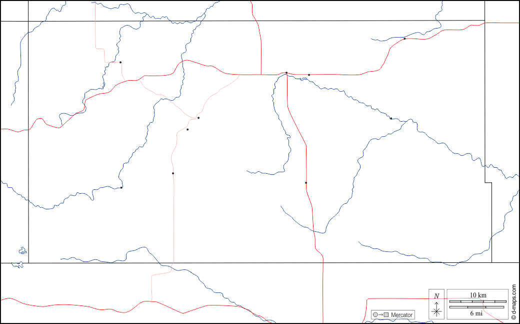 d-maps > संयुक्त राज्य > साउथ डकोटा > टोड काउंटी > सीमाओं, जल-सर्वेक्षण, मुख्य शहरों, सड़कों, सफेद