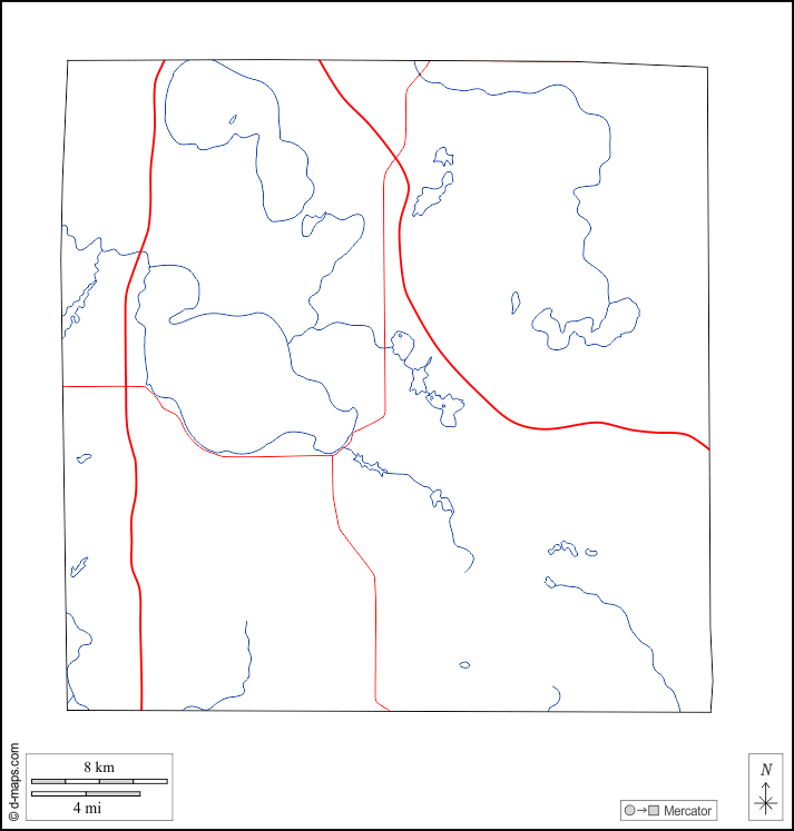 d-maps > संयुक्त राज्य > मिशिगन > रोज कॉमन काउंटी > बाह्यरेखा, जल-सर्वेक्षण, सड़कों, सफेद