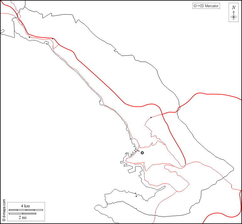d-maps > यूरोप > इटली > ट्रिएस्ट > सीमाओं, मुख्य शहरों, सड़कों, सफेद