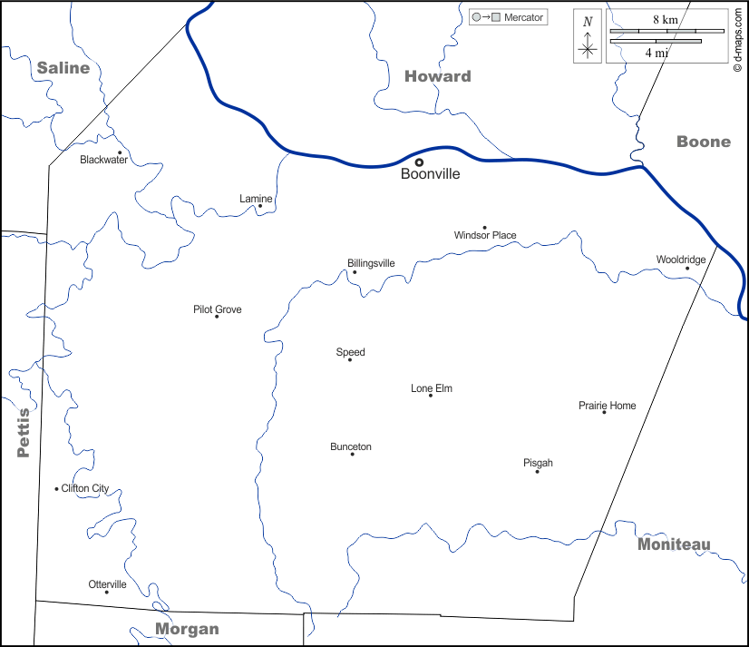 d-maps > संयुक्त राज्य > मिज़ूरी > कूपर काउंटी > सीमाओं, जल-सर्वेक्षण, मुख्य शहरों, नाम, सफेद