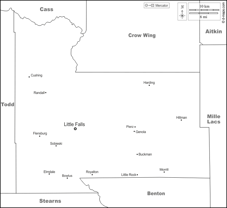 d-maps > संयुक्त राज्य > मिनेसोटा > मॉरिसन काउंटी > सीमाओं, मुख्य शहरों, नाम, सफेद