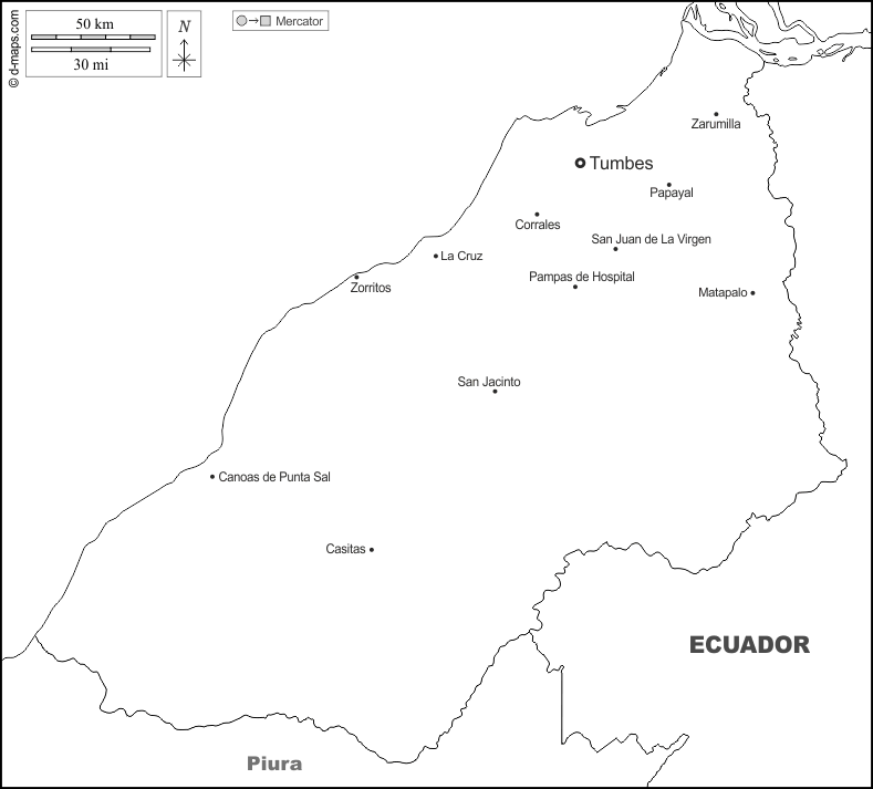 d-maps > महाअमेरिका > पेरू > टुम्बस > सीमाओं, मुख्य शहरों, नाम, सफेद