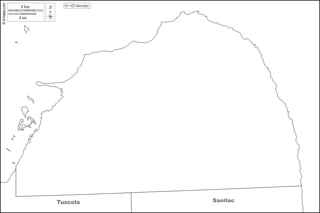 d-maps > संयुक्त राज्य > मिशिगन > हुरोन काउंटी > सीमाओं, नाम, सफेद