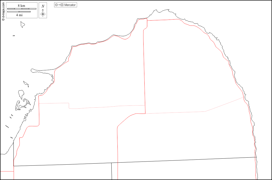 d-maps > संयुक्त राज्य > मिशिगन > हुरोन काउंटी > सीमाओं, सड़कों, सफेद