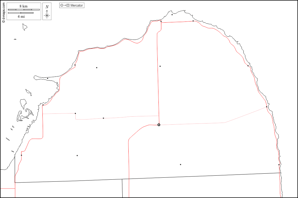 d-maps > संयुक्त राज्य > मिशिगन > हुरोन काउंटी > सीमाओं, मुख्य शहरों, सड़कों, सफेद