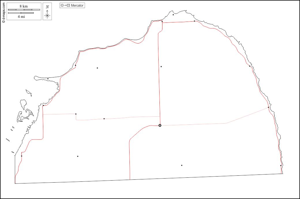d-maps > संयुक्त राज्य > मिशिगन > हुरोन काउंटी > बाह्यरेखा, मुख्य शहरों, सड़कों, सफेद