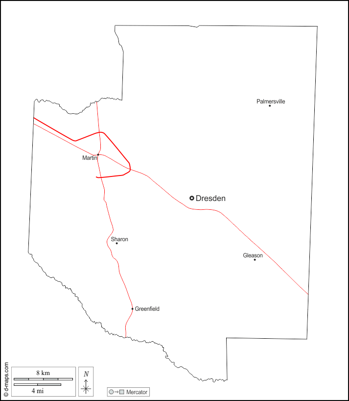 d-maps > संयुक्त राज्य > टेनेसी > वेकले काउंटी > बाह्यरेखा, मुख्य शहरों, सड़कों, नाम, सफेद