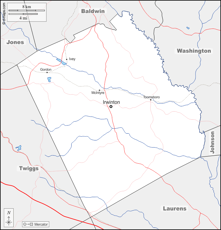 d-maps > संयुक्त राज्य > जॉर्जिया > विल्किनसन काउंटी > सीमाओं, जल-सर्वेक्षण, मुख्य शहरों, सड़कों, नाम